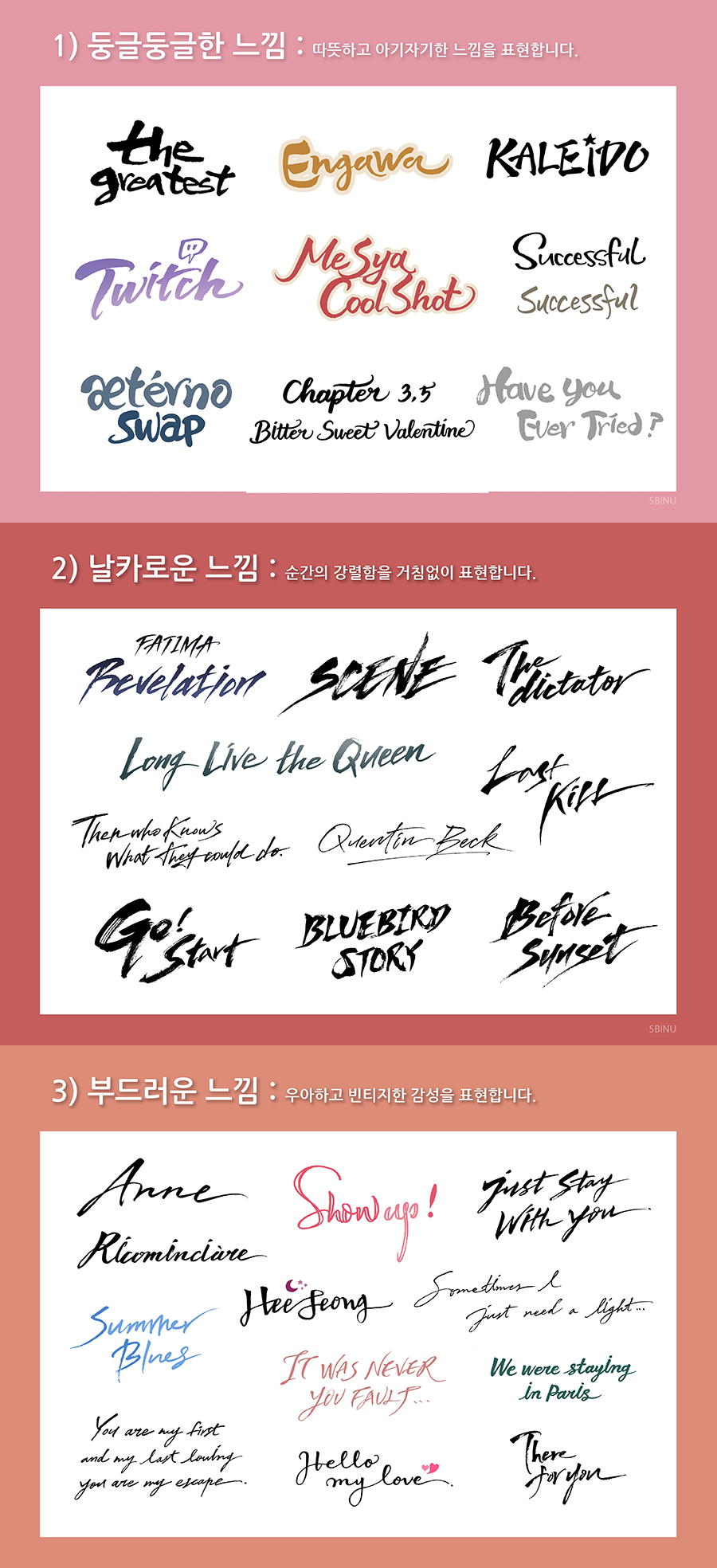 - 글씨체는 원하시는 느낌, 혹은 아래 샘플이나 외부자료를 보내주셔도 됩니다.