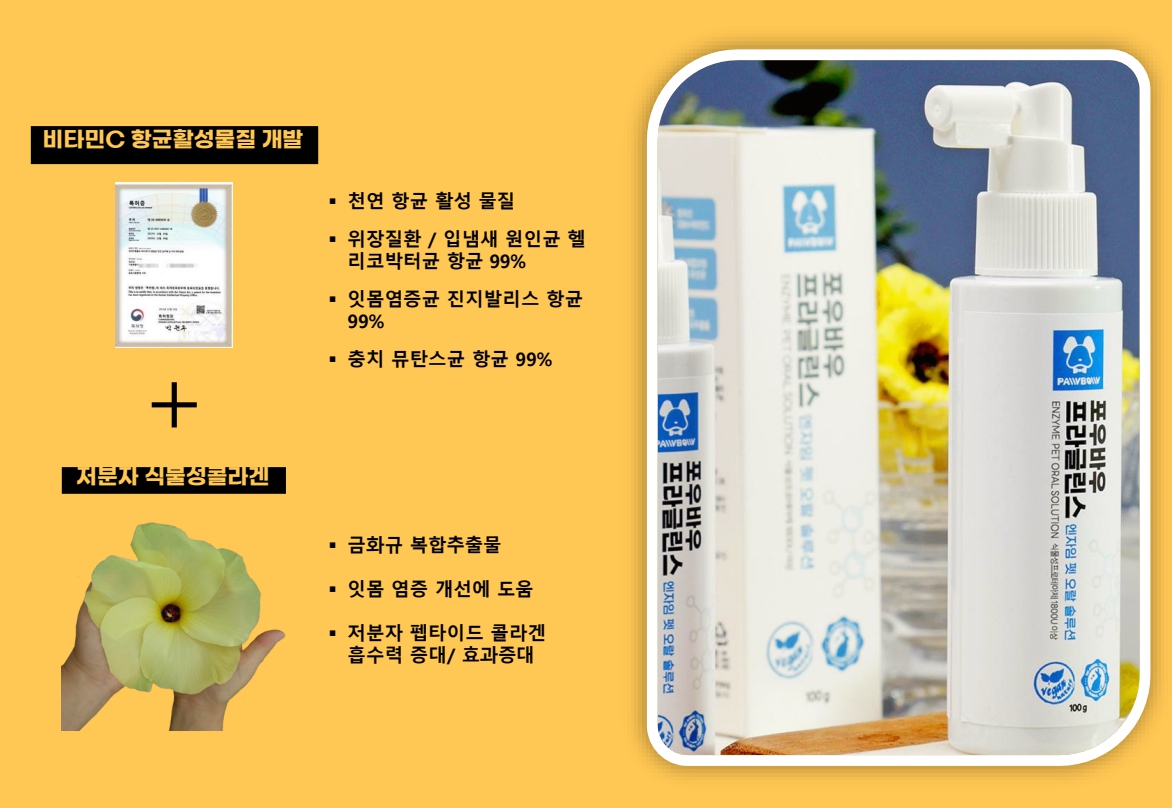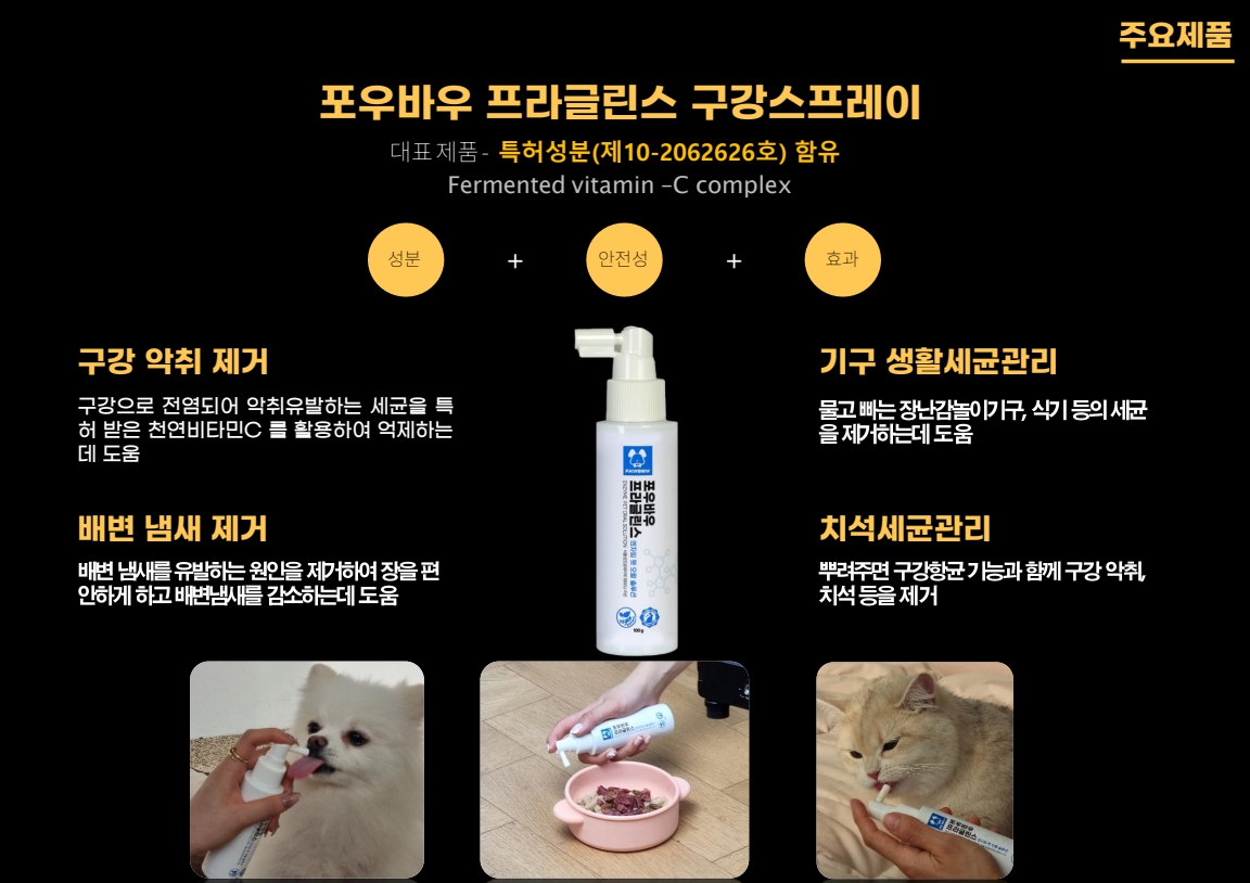 뱉어내지 못하는 반려동물의 특성상 섭취가 가능한 구강스프레이가 필요합니다.