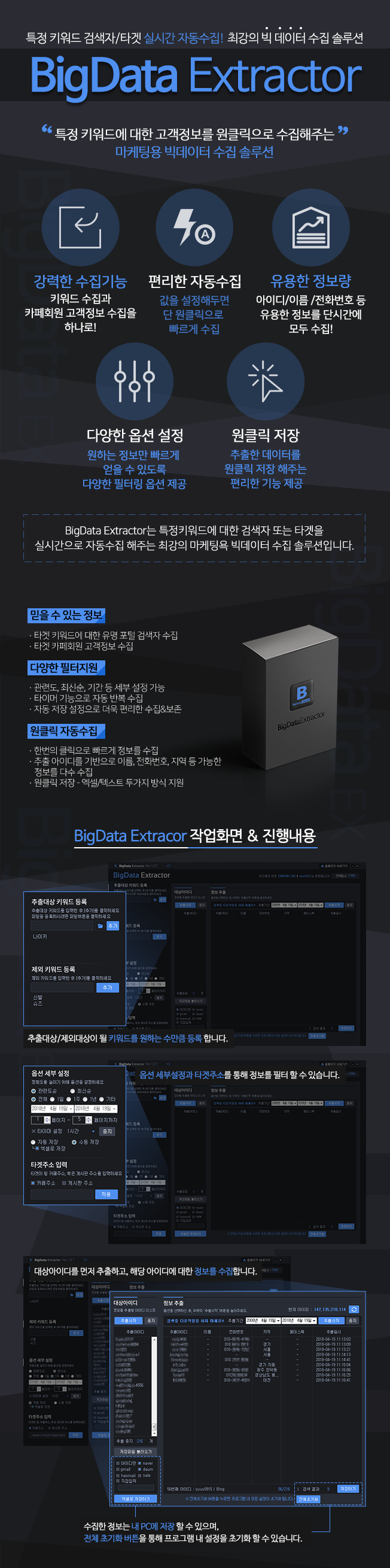 방대한 정보안에서 자신이 원하는 마케팅용 정보만 골라 수집할 수 있습니다.